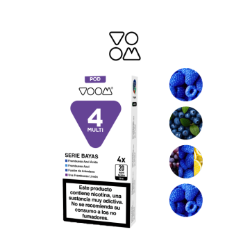 Estuche 4 cápsulas MULTI POD VOOM 2400 puffs con 20 mg/ml nicotina – Berry Serie