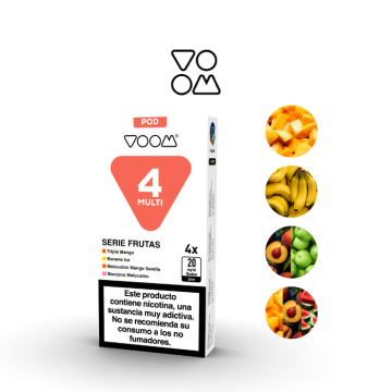 Estuche 4 cápsulas MULTI POD VOOM 2400 puffs con 20 mg/ml nicotina – Fruits Serie