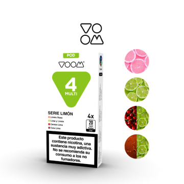 Estuche 4 cápsulas MULTI POD VOOM 2400 puffs con 20 mg/ml nicotina – Lemon Serie