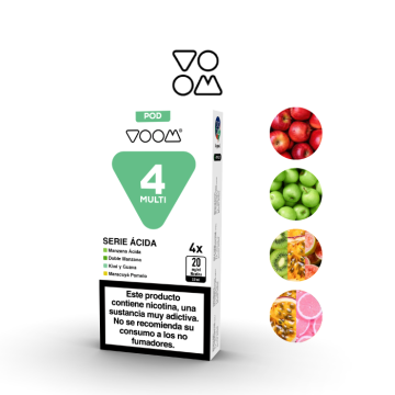 Estuche 4 cápsulas MULTI POD VOOM 2400 puffs con 20 mg/ml nicotina – Sour Serie